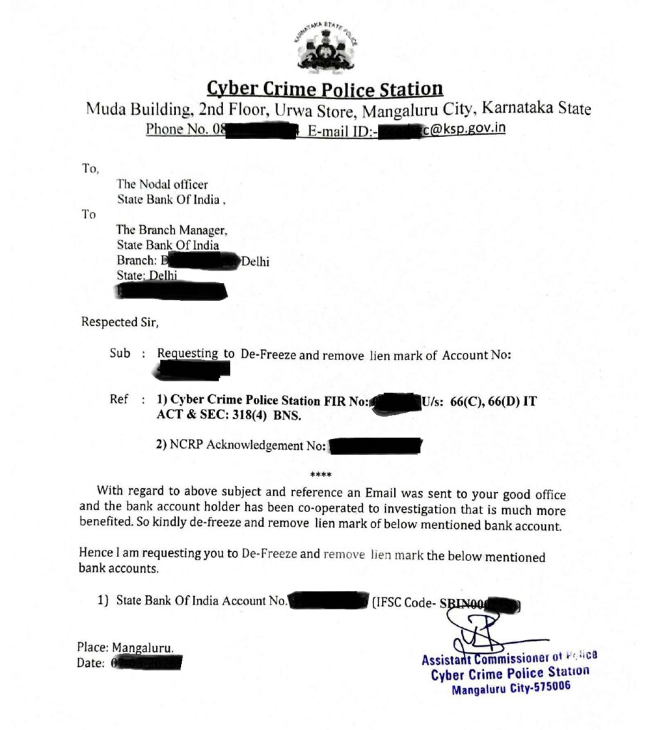 Submit NOC to Bank – Once received, submit it to your bank for account unfreezing.