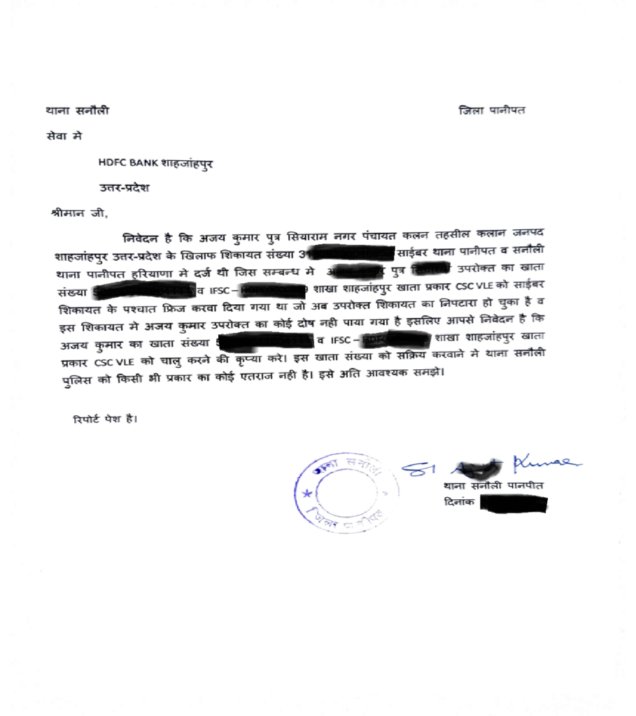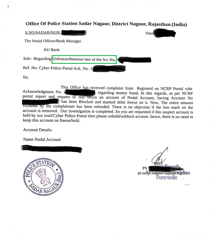 Request NOC – Seek a No Objection Certificate (NOC) from the Cyber Cell after proving your innocence.