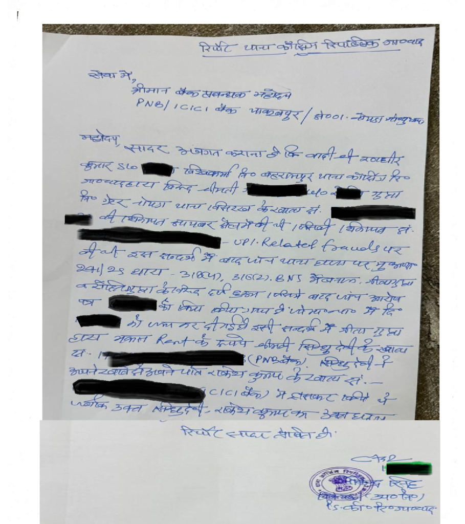 Approach Cyber Cell/Police – File an application with transaction proofs (payment slips, chats, IDs, etc.).